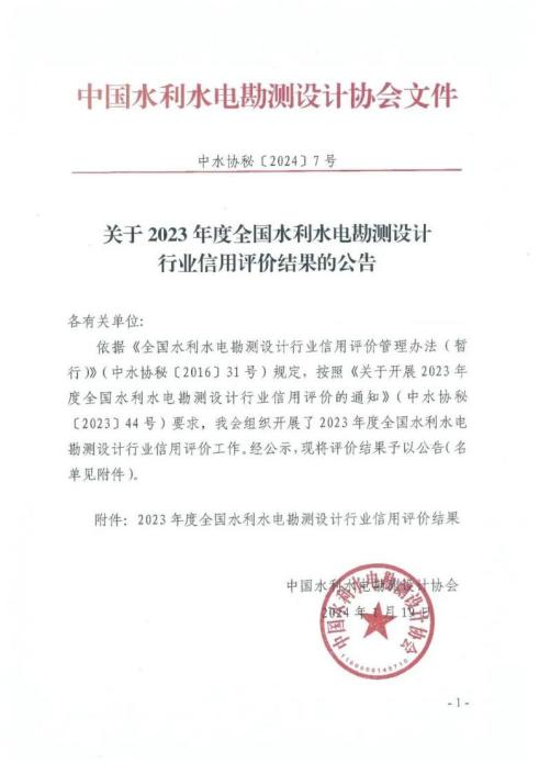發(fā)布日期:2024.02.02 近日,中國(guó)水利工程協(xié)會(huì)《關(guān)于2023年度水利建設(shè)市場(chǎng)主體(施工、監(jiān)理、招標(biāo)代理、質(zhì)量檢測(cè)單位)信用評(píng)價(jià)結(jié)果的公告(第一批)》(中水協(xié)〔2024〕6號(hào))、中國(guó)水利水電勘測(cè)設(shè)計(jì)協(xié)會(huì)《關(guān)于... -