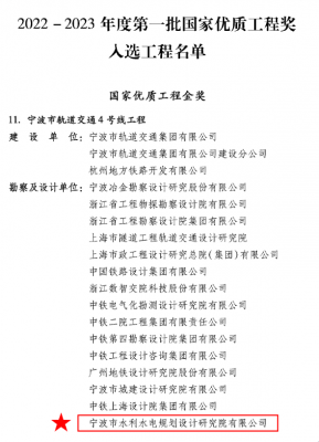 喜訊!我院參與設計的寧波軌道交通4號線工程榮獲國家優(yōu)質工程金獎