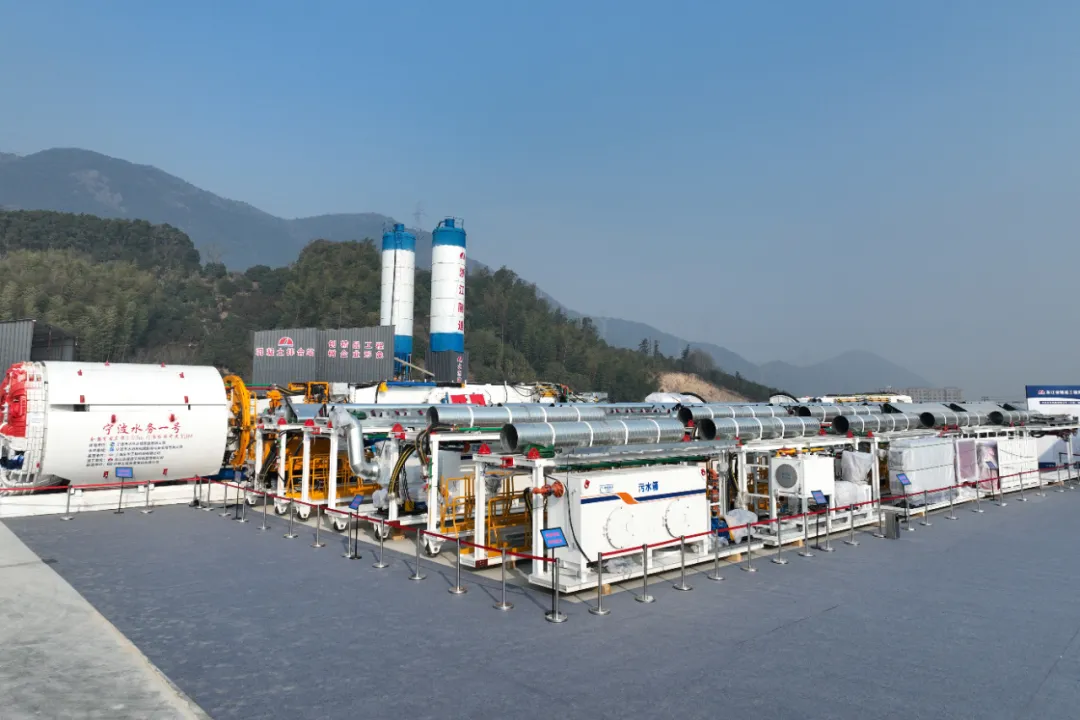 作為省、市重點(diǎn)工程建設(shè)項(xiàng)目,寧波市水庫(kù)群東西線聯(lián)通工程位于寧波市奉化區(qū)南部山區(qū),工程設(shè)計(jì)輸水規(guī)模為40萬(wàn)m³/d。建設(shè)內(nèi)容包括一條干線、兩條支線,以及沿線調(diào)節(jié)站及各類(lèi)閥井,全線總長(zhǎng)約40.54km。6#隧洞作為本工程重要節(jié)點(diǎn)性分部工程,全長(zhǎng)約12.28km,采用鉆爆法+TBM(全斷面硬巖掘進(jìn)機(jī))進(jìn)行隧洞開(kāi)挖。值得一提的是,本次所采用的敞開(kāi)式TBM設(shè)備“寧波水務(wù)一號(hào)”,其開(kāi)挖直徑4.03米,整機(jī)長(zhǎng)度約225米,掘進(jìn)長(zhǎng)度10.87km,為寧波水利行業(yè)首次應(yīng)用。