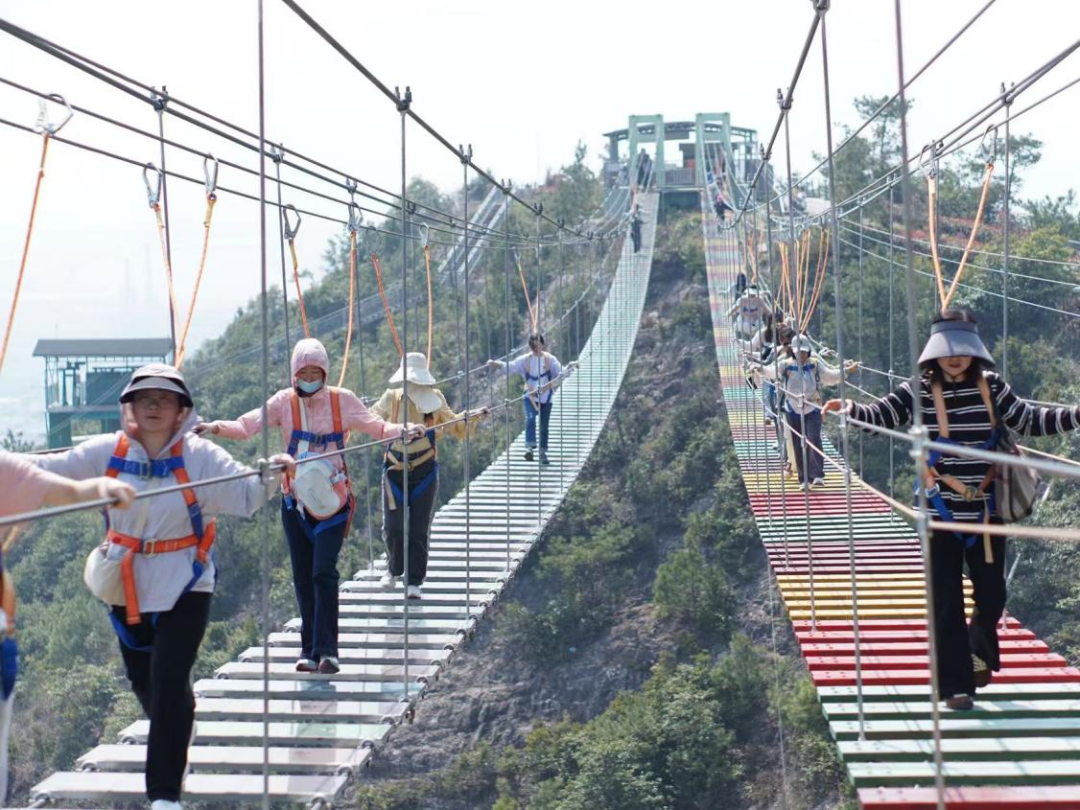 韶光爛漫,漫步尋春。午后,大家轉(zhuǎn)戰(zhàn)靈巖火山峰景區(qū),沿登山步道結(jié)伴而行,鍛煉身體之余,俯瞰浙東沿海罕見(jiàn)的火山口地貌遺跡。人花相映,山海相逢,既有虛空行走、高空滑翔的“挑戰(zhàn)派”,也有慢行賞景的“休閑黨”,共同享受山海交織的壯闊畫(huà)卷。