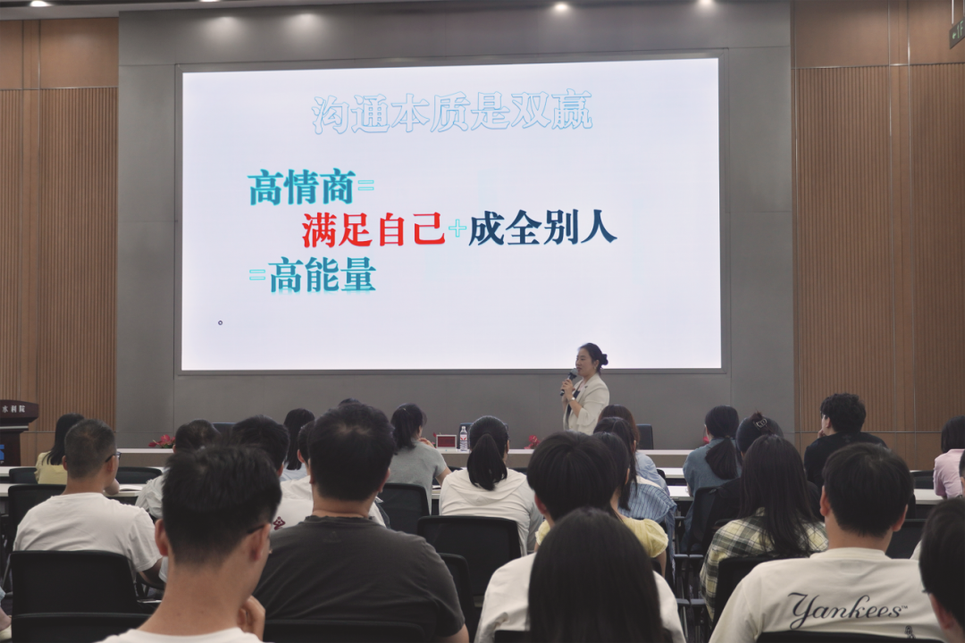 為提升員工的溝通能力與團(tuán)隊協(xié)作效率,2025年9月18日下午,我院工會在院一樓報告廳舉辦了一場主題為“從自我激勵到高效協(xié)同的溝通法則”專題講座。本次講座聚焦職場溝通,特邀禮儀專家、教育學(xué)碩士陳瑛擔(dān)任主講。我院各部門近70名員工積極參與,現(xiàn)場氣氛熱烈。