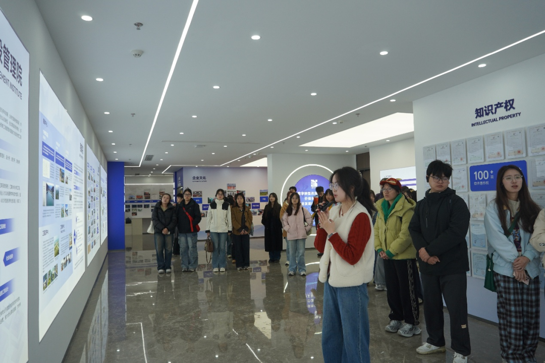 這場(chǎng)研學(xué)在水院展廳拉開(kāi)序幕。在講解員的引導(dǎo)下,研學(xué)團(tuán)通過(guò)豐富的圖文資料,在展廳沉浸式了解我院的發(fā)展歷程、成果業(yè)績(jī)、企業(yè)文化,全方位感知我院在涉水產(chǎn)業(yè)、科技創(chuàng)新、團(tuán)隊(duì)建設(shè)等領(lǐng)域的綜合實(shí)力與發(fā)展成果。每一塊展板都在訴說(shuō)著寧波院人砥礪前行的故事,讓同學(xué)們對(duì)水利行業(yè)有了更直觀、更深刻的認(rèn)識(shí)。