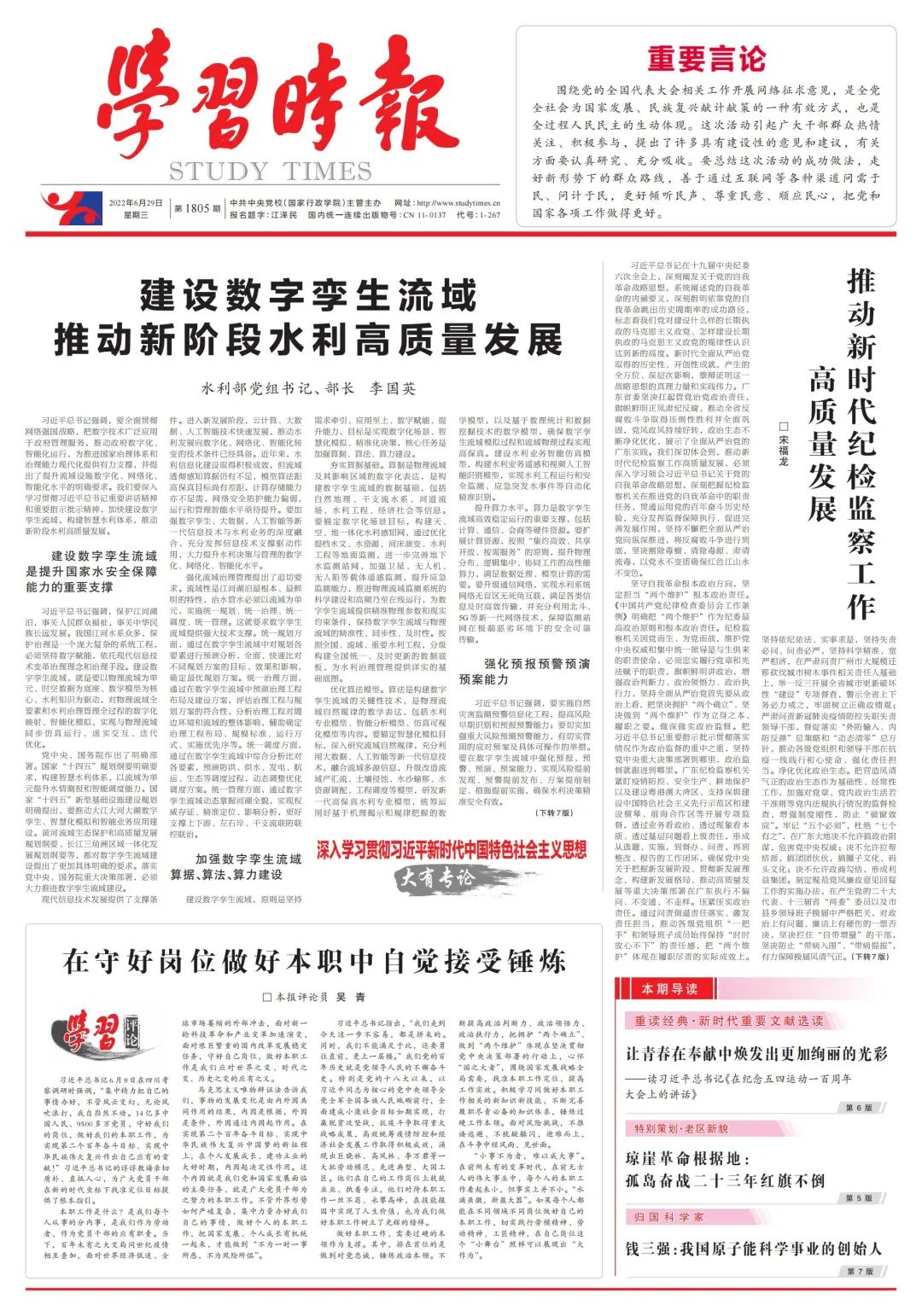 水利部黨組書(shū)記、部長(zhǎng)李國(guó)英:建設(shè)數(shù)字孿生流域 推動(dòng)新階段水利高質(zhì)量發(fā)展