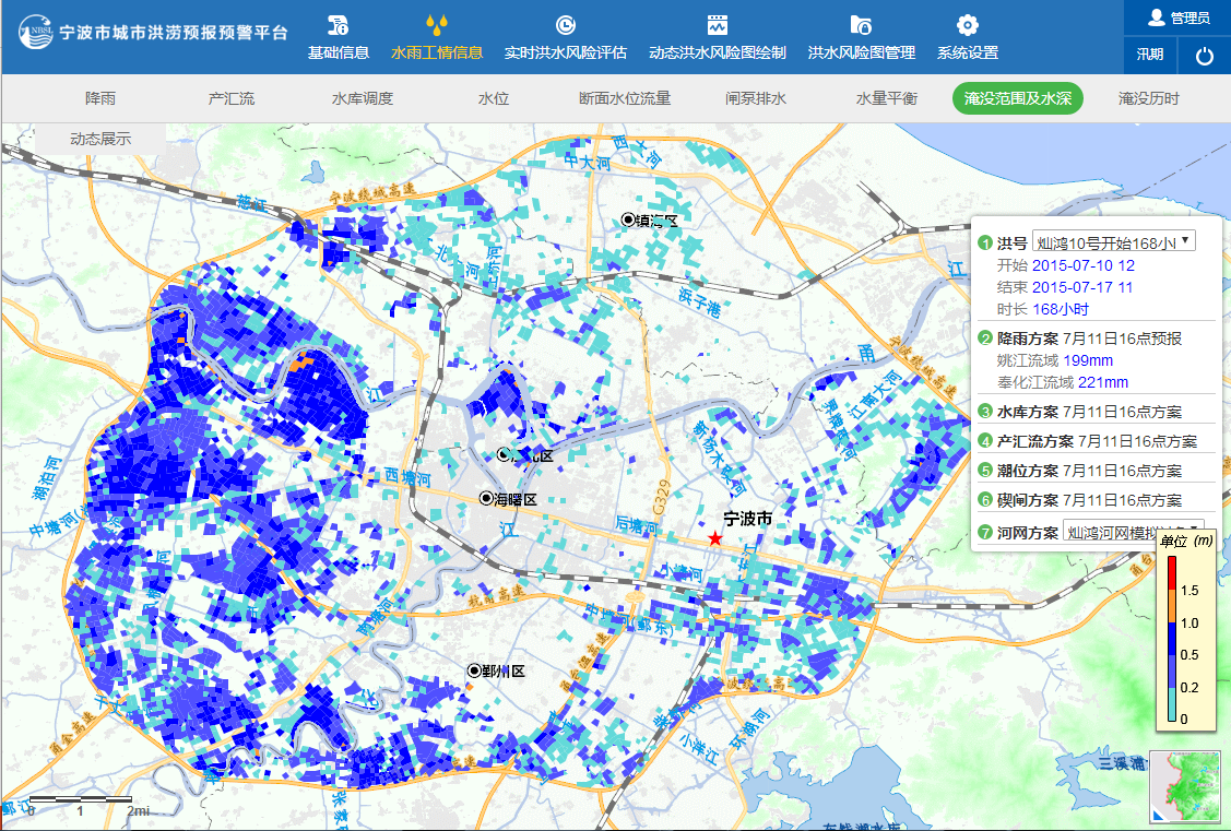 圍繞城市防汛工作的特點(diǎn),通過構(gòu)建城市洪澇計(jì)算及風(fēng)險分析數(shù)學(xué)模型,結(jié)合物聯(lián)網(wǎng)、大數(shù)據(jù)、人工智能等技術(shù),能夠提前6~12小時預(yù)判洪澇災(zāi)害的發(fā)生區(qū)域、時間和風(fēng)險程度,實(shí)現(xiàn)對洪澇災(zāi)害“預(yù)報預(yù)警、未雨綢繆、主動應(yīng)對、減災(zāi)減損”。