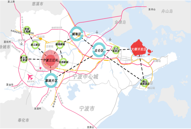 大榭開發(fā)區(qū)位于浙江省寧波市東部,其中山地面積約占總面積的40%以上,極易受山區(qū)洪水、平原澇水以及外海潮水等多重威脅,且開發(fā)區(qū)內均以石化、能源及港口等大中型企業(yè)為主,一旦遭遇洪潮災害,經(jīng)濟損失巨大,社會影響突出。為有效保障區(qū)域防洪(潮)排澇安全,統(tǒng)籌協(xié)調地塊開發(fā)與水利建設間的相關關系,指導新形勢下區(qū)域水利工程的建設和管理,規(guī)劃提出全區(qū)防洪(潮)治澇工程體系的總體布局及控制建設要求,并將工程措施與非工程措施相結合,從控制洪水向管理洪水轉變,從而有效提升開發(fā)區(qū)防洪(潮)排澇能力,支撐經(jīng)濟社會可持續(xù)發(fā)展。