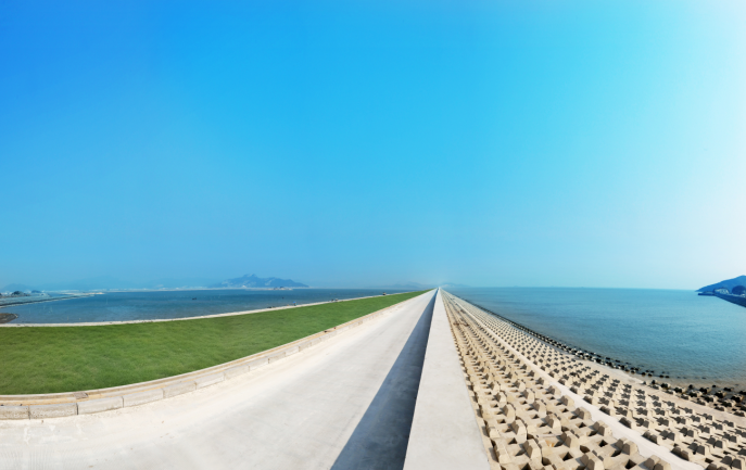 工程圍涂面積2.12萬畝,海堤全長約5345m。工程項(xiàng)目由海堤、水閘、排澇河、防波堤、船閘、交通堤、交通橋等組成。海堤工程包括南堤4508.3m、北堤840m;水閘工程炮臺(tái)山主排閘5孔×8m、飯桶山主納閘凈寬4孔×8m、貓頭納排閘3孔×3m、竹灣沖沙閘1孔×3m;河道工程包括炮臺(tái)山河道3081m、貓頭納排河2390m、白巖山主排河1300m、飯桶山主排河(3064m)以及南區(qū)納潮干河(4073m);防波堤長為703.87m;船閘凈寬10m;交通工程包括Ⅰ號(hào)交通堤、Ⅱ號(hào)交通堤及北分支、南分支交通堤,施工道路、竹灣碼頭、竹灣錨地、毛灣碼頭及防波堤、1#交通橋、2#交通橋。
