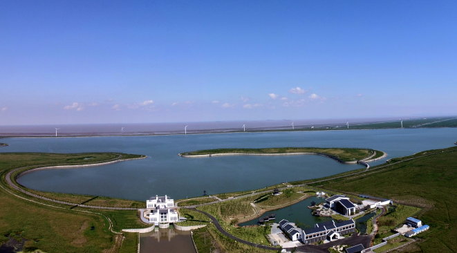 工程占地1萬(wàn)畝,總庫(kù)容4508萬(wàn)方,調(diào)蓄庫(kù)容3500萬(wàn)方,屬中型水庫(kù)。其工程等別為Ⅲ等,主要建筑物級(jí)別為3級(jí),洪水標(biāo)準(zhǔn)按50年一遇設(shè)計(jì),300年一遇校核。工程主要建設(shè)內(nèi)容包括水庫(kù)堤壩長(zhǎng)10929米,泵站1座(裝機(jī)容量800kw),放水閘1座,節(jié)制閘3座,排咸工程,同時(shí)建設(shè)湖心島、配套引水河道、橋梁、管理用房和綠化工程等。