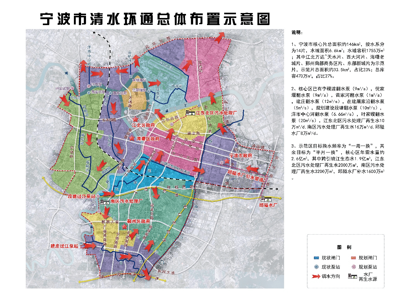 本工程任務(wù)為通過生態(tài)引調(diào)水,讓平原河網(wǎng)的水體活起來、動(dòng)起來,改善河道水環(huán)境。工程位于寧波市區(qū),主要包括引排水泵站及凈化工程、中環(huán)通分區(qū)調(diào)控工程(結(jié)合排澇節(jié)制閘)、小環(huán)通及微循環(huán)分區(qū)調(diào)控工程(調(diào)水節(jié)制閘)、水系連通工程及其他工程等五部分。