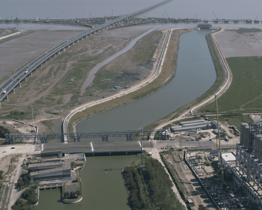 本工程位于寧波市鎮(zhèn)海區(qū)東部,新泓口河下游,現(xiàn)新泓口水閘外海側(cè),金塘大橋橋下。結(jié)合排澇閘外移及兩側(cè)防護(hù)堤的建設(shè),將有利于該海域加快灘涂淤漲,以部分恢復(fù)錢(qián)塘江河口南岸的淺海潮灘濕地;隨著灘涂淤漲有利于該海域增加海洋生物總量,有利于生物多樣性的恢復(fù)及生態(tài)環(huán)境的改善。