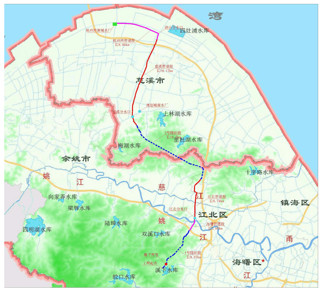 通過本工程的建設(shè)可實(shí)現(xiàn)寧波向慈溪市補(bǔ)充優(yōu)質(zhì)原水1500萬m3/a,向杭州灣新區(qū)補(bǔ)充優(yōu)質(zhì)原水2000萬m3/a,以減輕未來慈溪市和杭州灣新區(qū)優(yōu)質(zhì)水用水壓力,填補(bǔ)2020水平年的優(yōu)質(zhì)水需水缺口、補(bǔ)充2030水平年的部分優(yōu)質(zhì)水需水缺口。