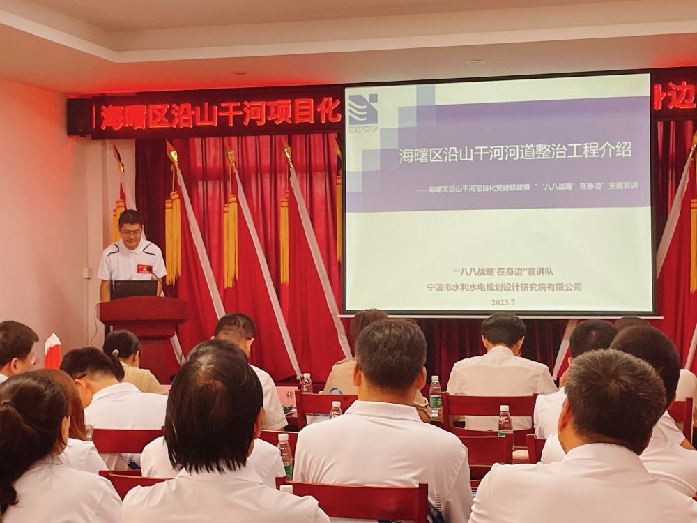 近日,海曙區(qū)直機關工委和區(qū)水利局以“五最黨建”為引領,在集士港鎮(zhèn)岳童村文化禮堂舉行沿山干河項目化黨建聯建暨“‘八八戰(zhàn)略’在身邊”主題宣講啟動儀式,我院作為沿山干河項目參建單位、活動的承辦方參與了啟動儀式。我院黨總支書記、副院長王洪霞,工程設計項目組及青年黨員代表十余人參加了上述活動。