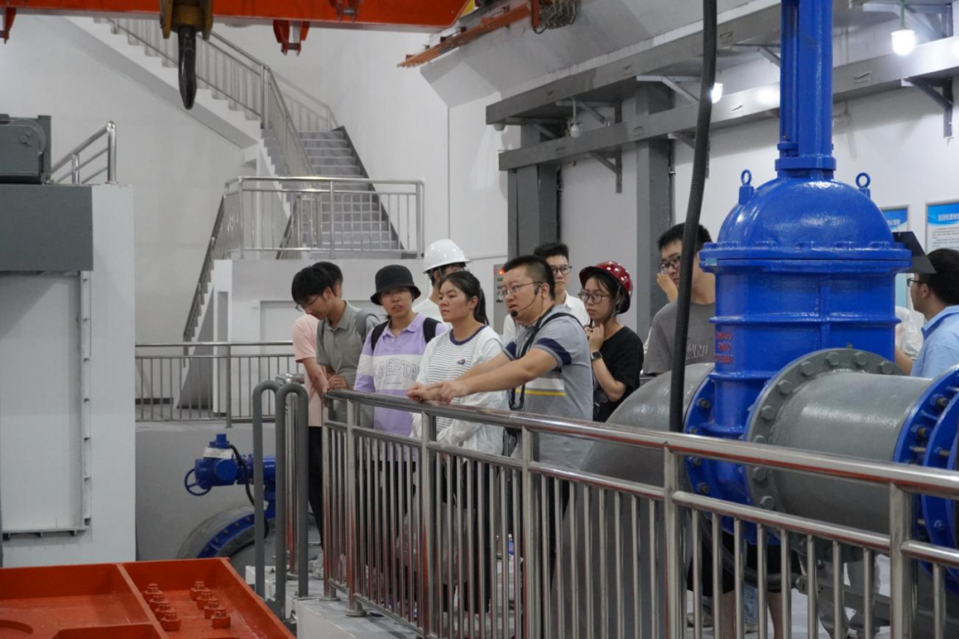 最后,研學隊伍來到北堤樞紐參觀。該工程榮獲中國建筑行業(yè)工程質量的最高榮譽獎——2020-2021年度第一批中國建設工程魯班獎。胡經理帶領研學隊伍依次進入啟閉機房、觀景臺、控制室等處,現場講解工程設計思路、建造工藝和管理要點。