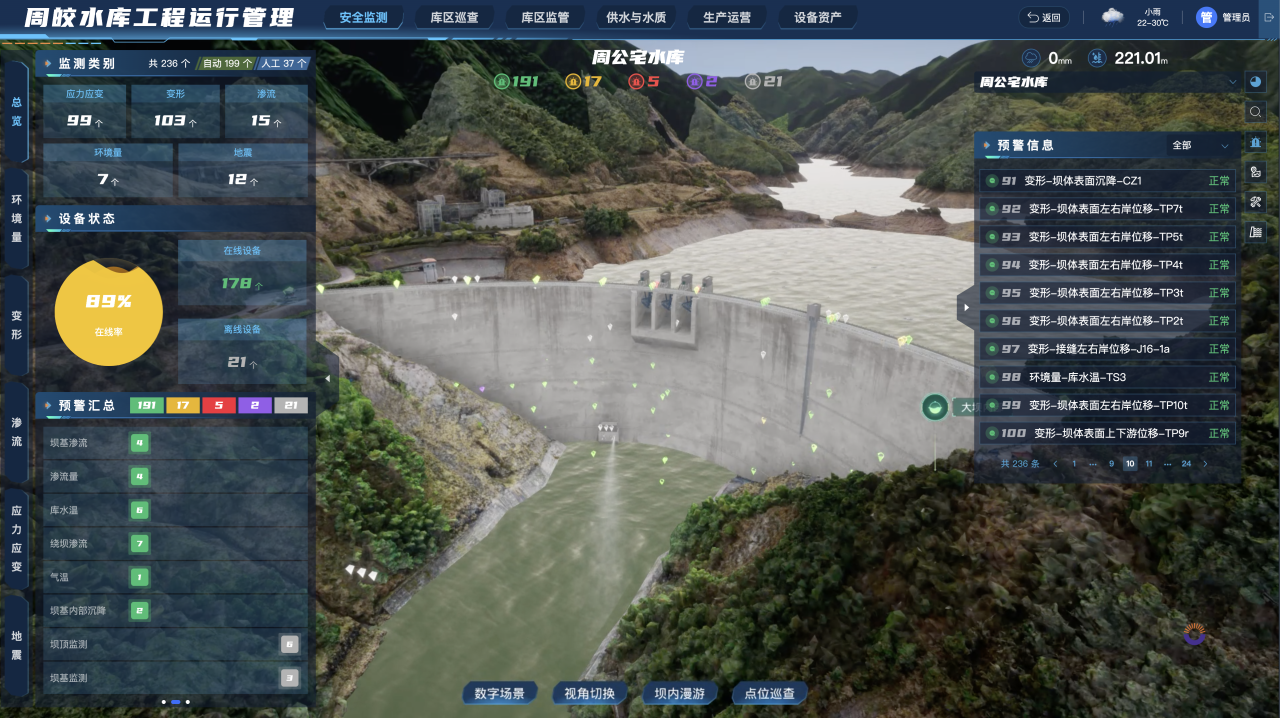 周公宅水庫(kù)運(yùn)行管理矩陣平臺(tái)“四管”工作頁(yè)面