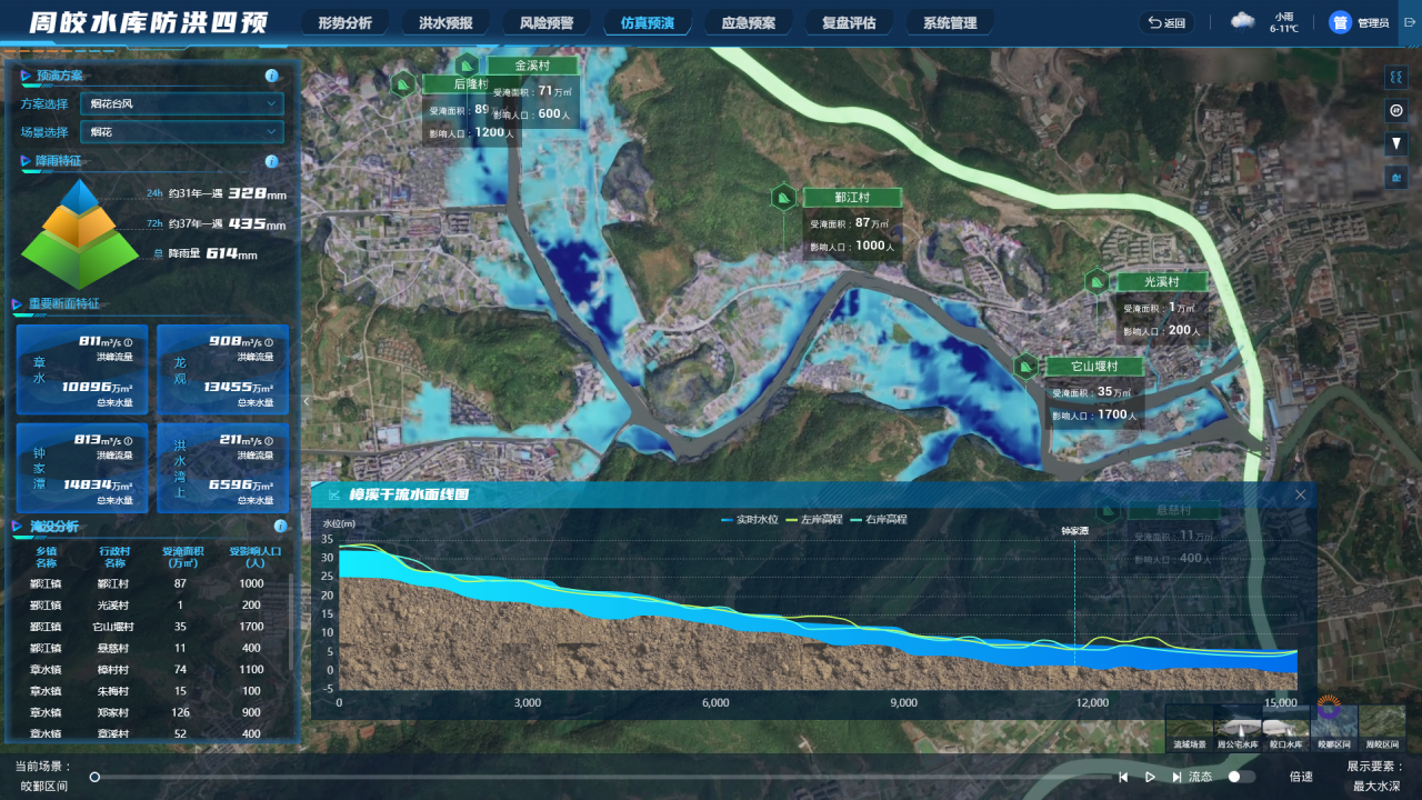 以“煙花”臺(tái)風(fēng)為預(yù)演方案的洪水仿真預(yù)演過(guò)程