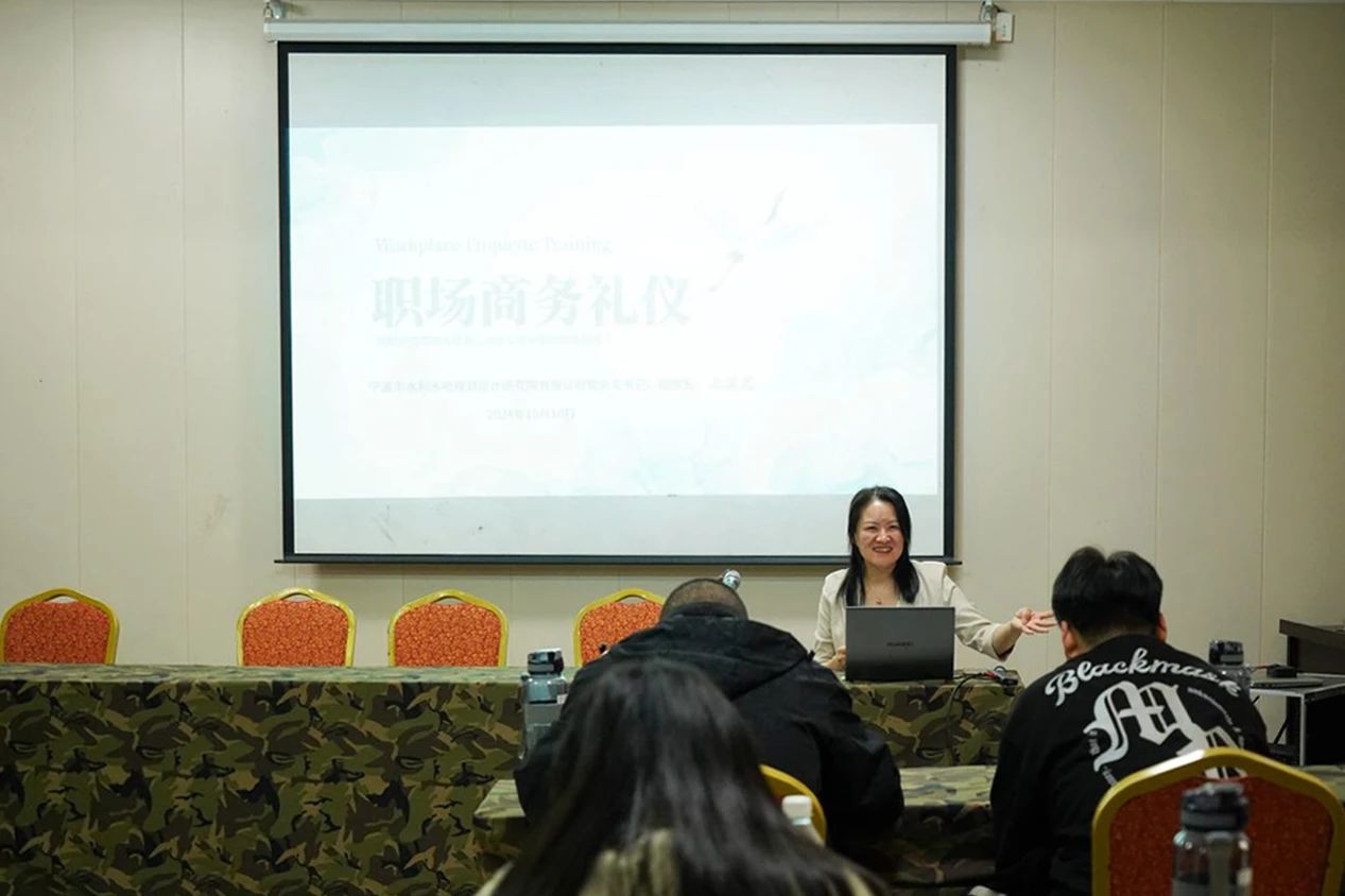 業(yè)務(wù)培訓(xùn)設(shè)有多個專題講座,分別由副院長王洪霞及各部門分院負責(zé)人主講。內(nèi)容涵蓋職場商務(wù)禮儀、行政辦公知識、規(guī)章制度宣貫、保密專題培訓(xùn)及規(guī)劃咨詢、工程設(shè)計、勘察檢測、建設(shè)管理、智慧水利等五大業(yè)務(wù)內(nèi)容。講師們聚焦重點,講解難點,分享經(jīng)驗,幫助新員工盡快完成從校園到職場的銜接,了解崗位需求、獲取職場知識、積極適應(yīng)新環(huán)境。新員工認(rèn)真聽講,積極提問,收獲良多。