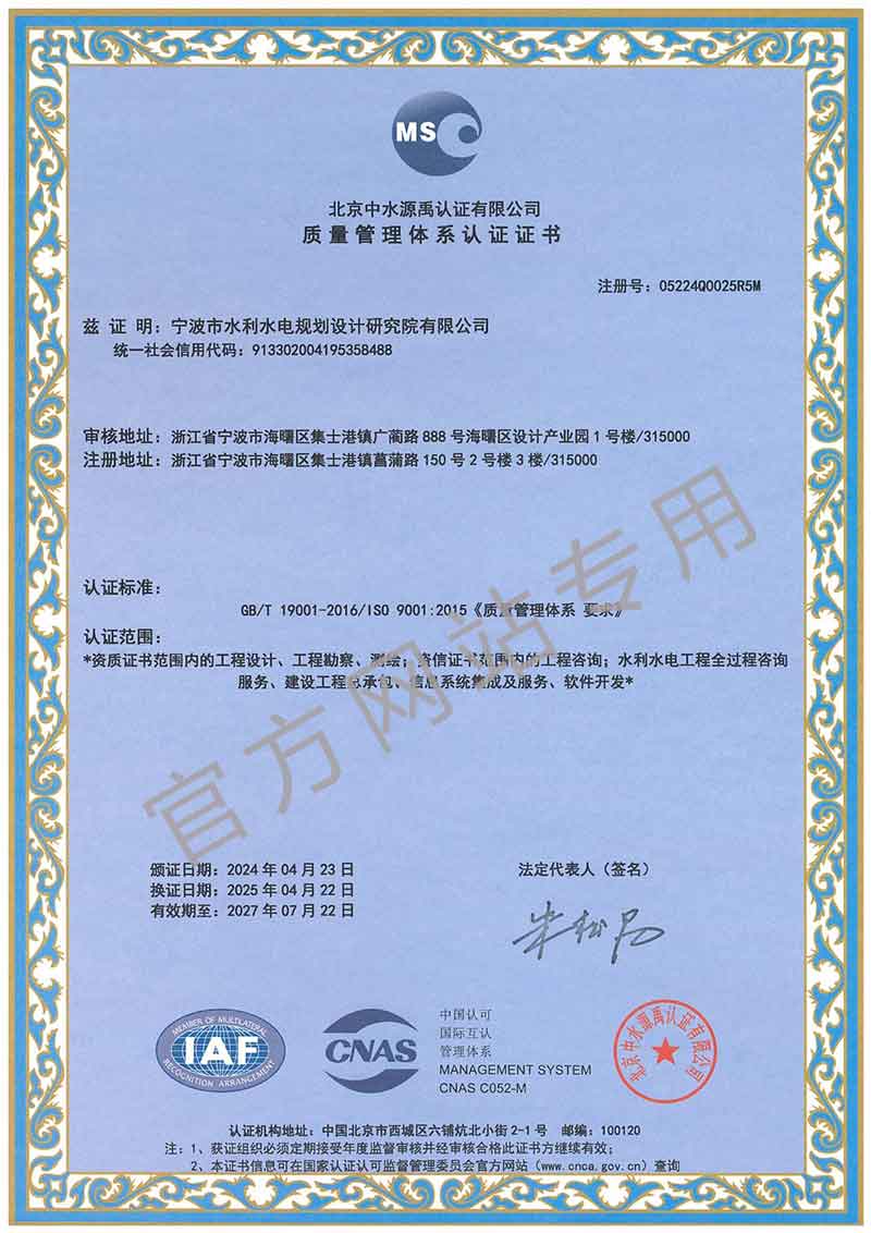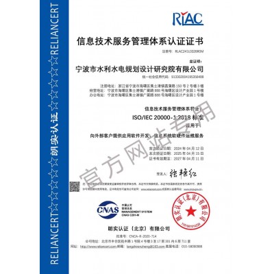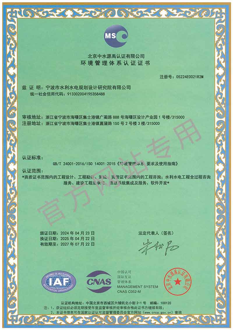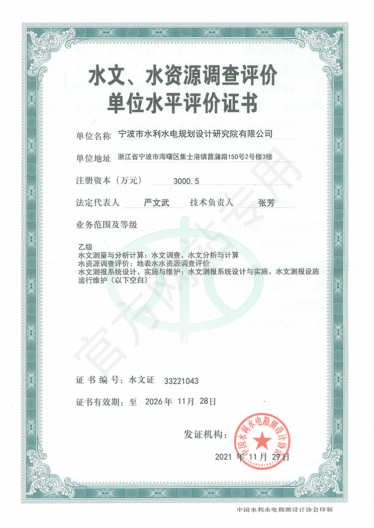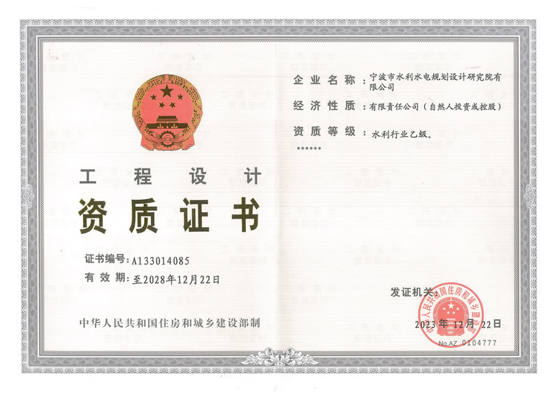 寧波院具有水利水電工程設(shè)計(jì)、工程勘察、工程咨詢、水土保持、水資源論證等多項(xiàng)資質(zhì)。承擔(dān)中小河流域規(guī)劃、水庫(kù)、河道整治、灘涂圍墾等工程的勘察、設(shè)計(jì)、咨詢、總承包業(yè)務(wù),以及各領(lǐng)域建設(shè)項(xiàng)目的防洪評(píng)價(jià)、水資源論證、水土保持方案編制、水土保持監(jiān)測(cè)、計(jì)算機(jī)行業(yè)CMMI 3級(jí)認(rèn)證、知識(shí)產(chǎn)權(quán)管理體系認(rèn)證等。